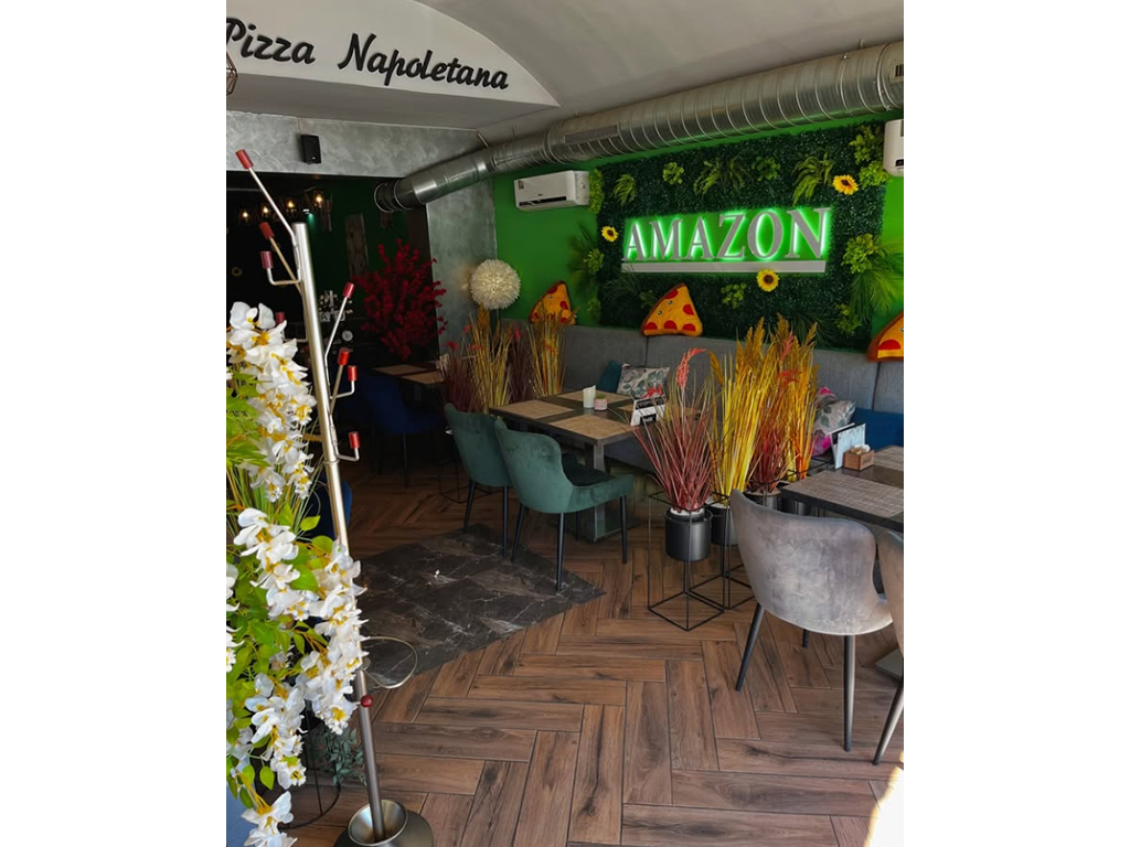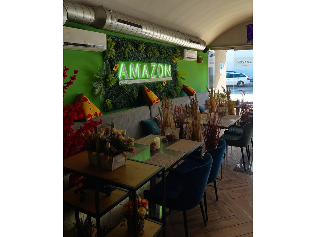 Amazon Pizzeria se nalazi u ulici Momčila Popovića 18, na Zapadnom tranzitu, u blizini centra, preko puta bivše "Krčme kod Alekse".